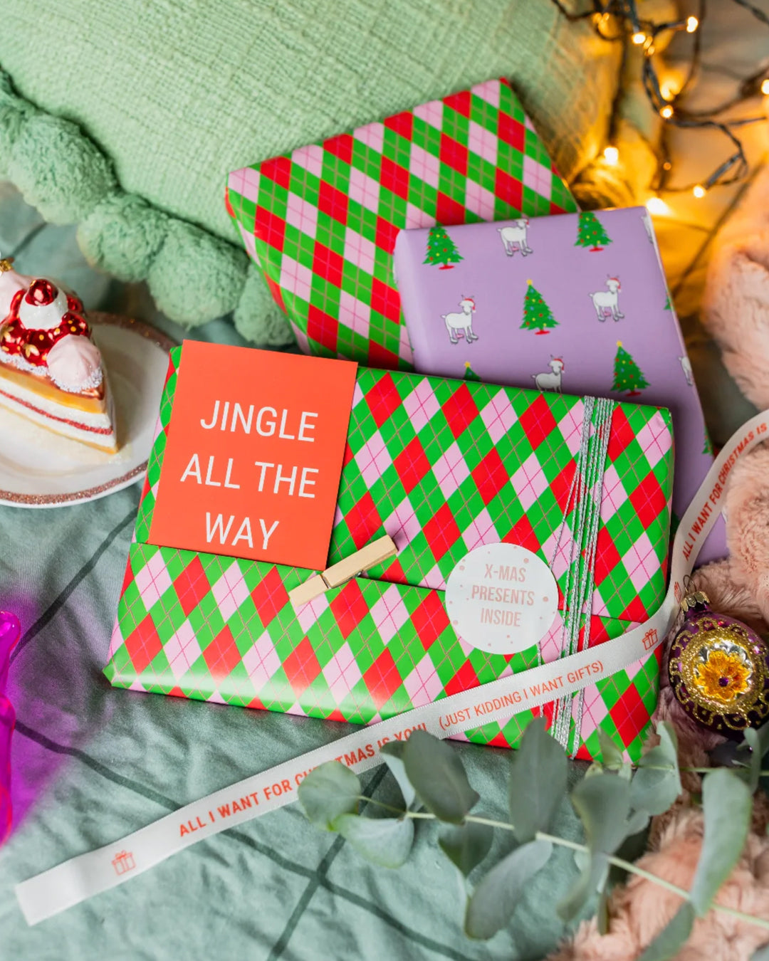 Kadopapier Kerst ornamenten