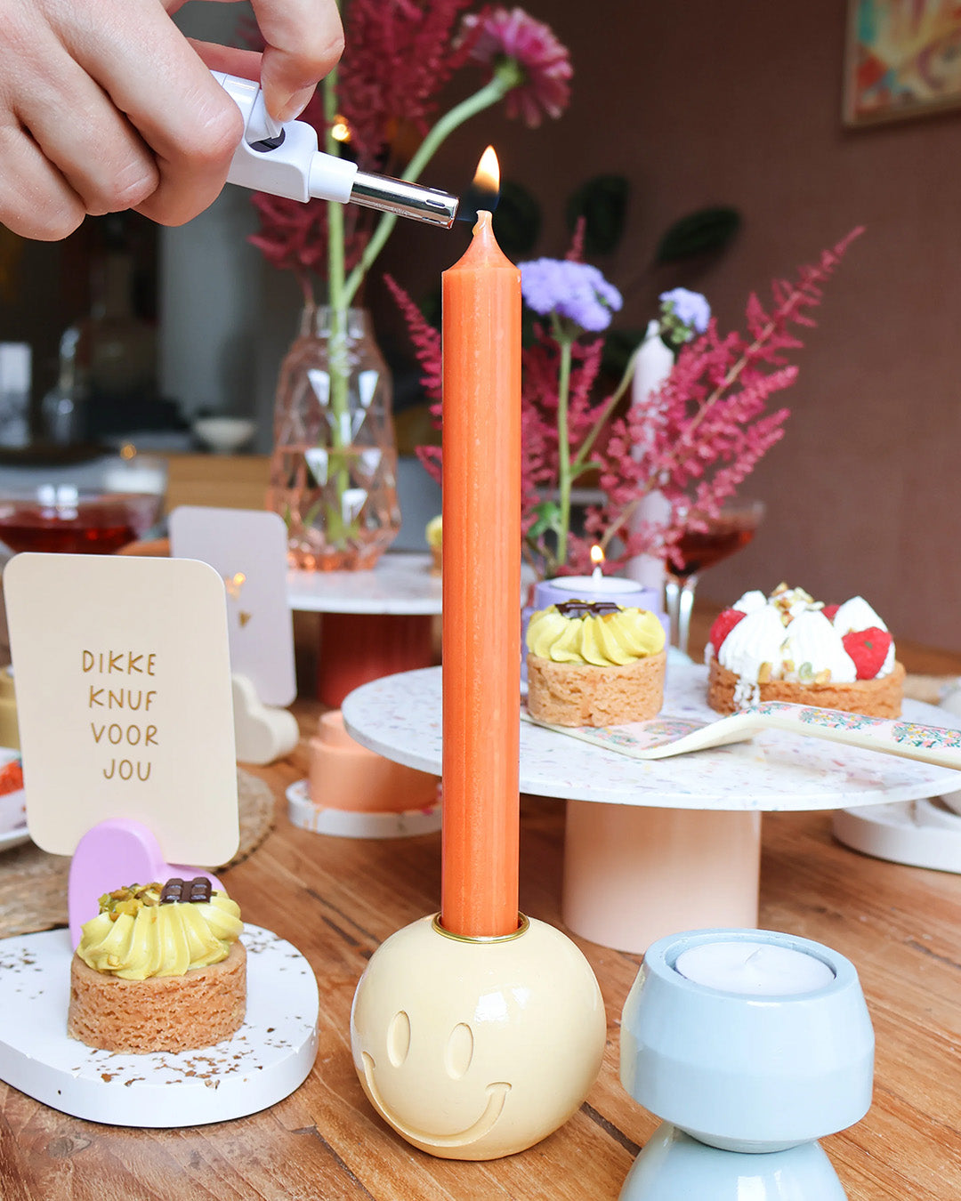 Smiley kandelaar butter yellow